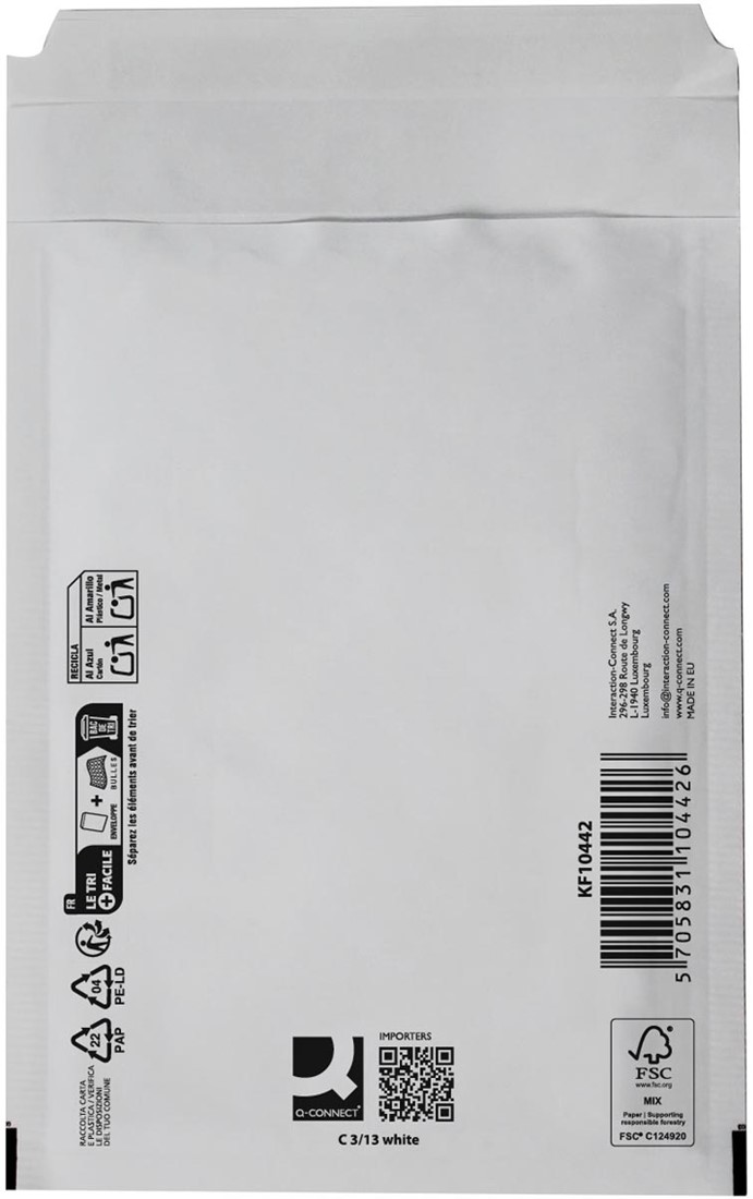 Artikelomschrijving Q-CONNECT luchtkussenenveloppen, wit, 3-C, 170 x 225 mm, doos van 100 stuks