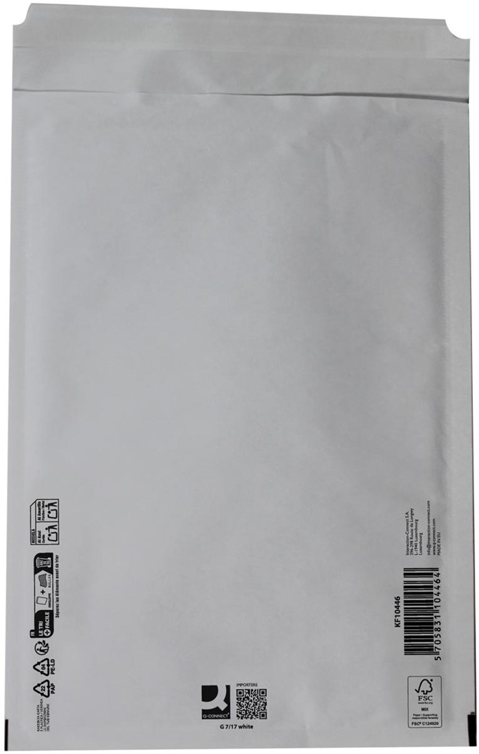 Artikelomschrijving Q-CONNECT luchtkussenenveloppen, wit, 7-G, 250 x 350 mm, pak van 10 stuks