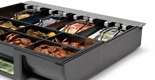 Deze kassalade biedt ruimte aan 8 muntsoorten en 4 soorten bankbiljetten