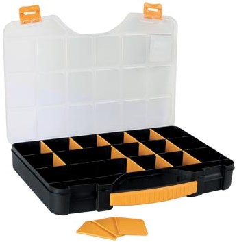 Opbergkoffer met vakjes zwart/geel 18 vakjes
