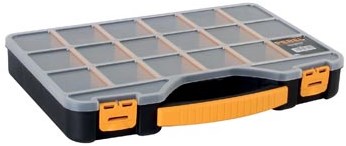 Deze opbergkoffer is ideaal voor het organiseren van kleine voorwerpen. Met 18 aanpasbare compartimenten biedt deze koffer de perfecte oplossing voor hobbyisten, klussers en iedereen die behoefte heeft aan een gestructureerde opbergruimte. De koffer is gemaakt van stevig materiaal en heeft een praktische clipsluiting, waardoor je spullen veilig opgeborgen zijn. Het handvat maakt het eenvoudig om de koffer mee te nemen, waar je ook naartoe gaat.