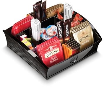 In je koffiehoek is het prettig al je koffie benodigdheden bij elkaar te hebben. In dit verdeelplateau met wel 10 vakken, kun je suiker, creamer cups, creamer sticks, theezakjes, roerstokjes en zelfs een klein prullenbakje kwijt. Je koffie corner blijft zo netjes en georganiseerd. Het Take a Break coffee corner pakket van Cep bestaat uit een ladenblok (1082561) en dit handige verdeelplateau (1013011). Zo maak je een koffiehoek op kantoor waar je rustig kan genieten van een kopje koffie.