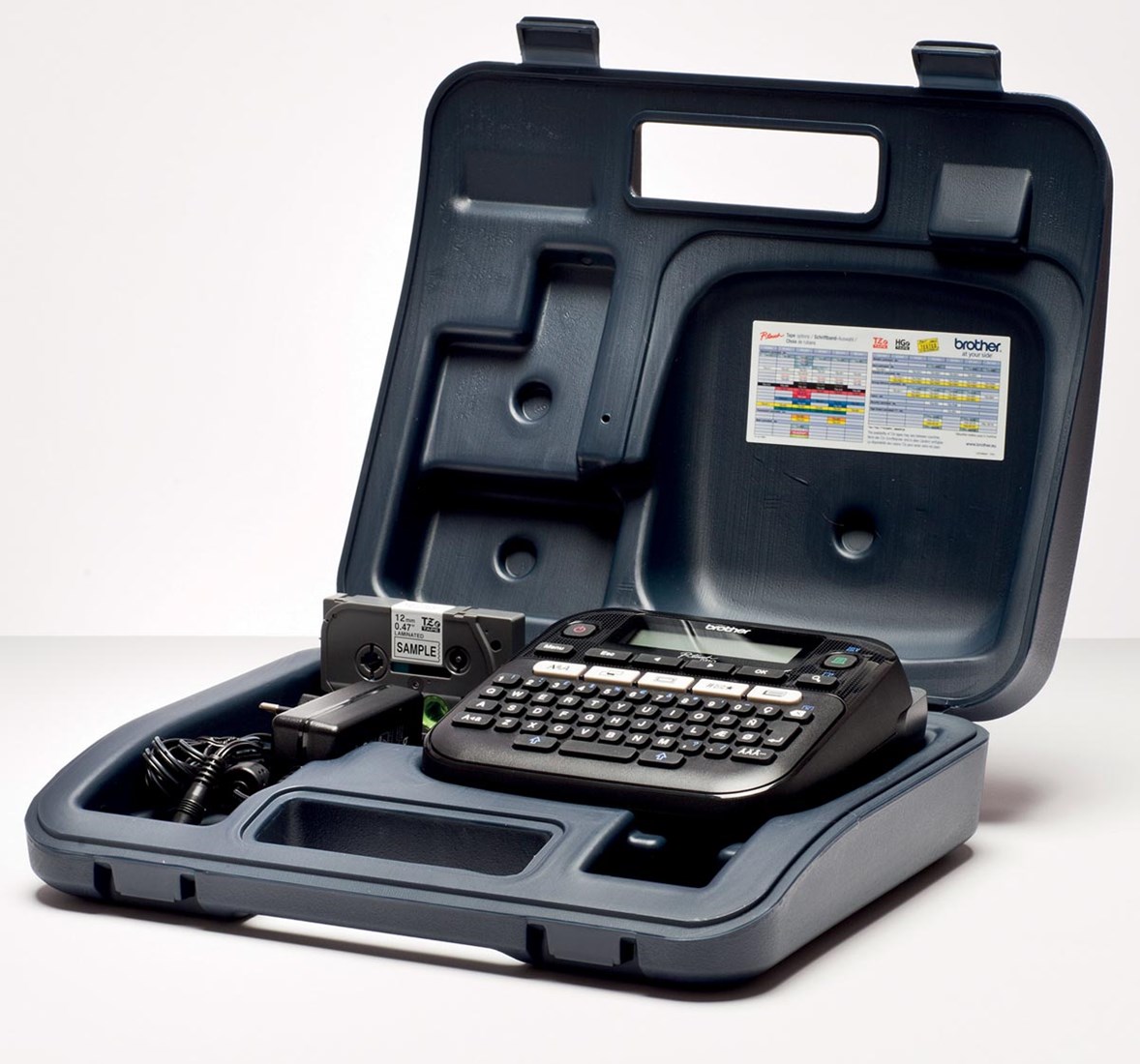 - 644 karakters, 3 lettergroottes, 14 letterstijlen, 617 symbolen, 97 kaders, 2 regels op 12 mm tape