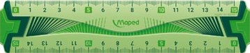 Met de Maped liniaal van 15 cm meet je snel en eenvoudig. Deze liniaal is onbreekbaar en schokbestendig. De graduaties zijn aangebracht met UV-inkt, waardoor ze goed zichtbaar zijn en lang meegaan. Het middenstuk is van soft touch materiaal, wat zorgt voor een fijne grip. De liniaal heeft progressieve graduaties en visuele merktekens om de 5 cm. Je kunt kiezen uit de kleuren blauw en groen, maar de 40 cm variant is alleen in blauw verkrijgbaar. De liniaal is voorzien van een antivlekboord en wordt geleverd in een handige ophangetui.