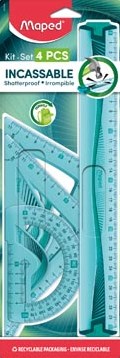 Tekenset met liniaal, geodriehoek, gradenboog en winkelhaak Maped Flexibel