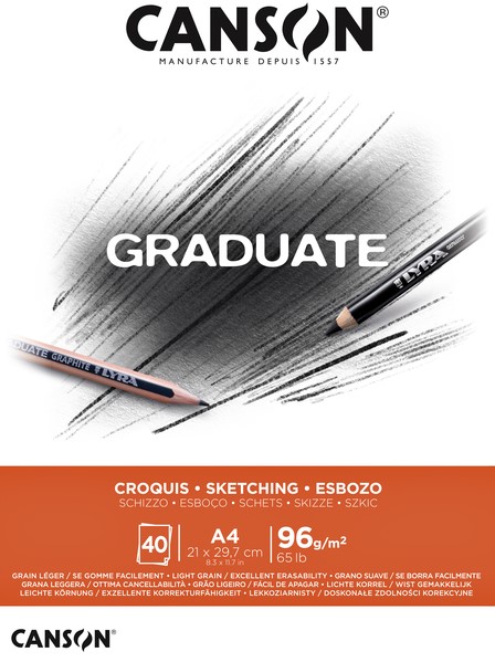 Stel een vraag over Schetspapier Canson Graduate Sketch 40vel 96gr A4 natuurlijk wit