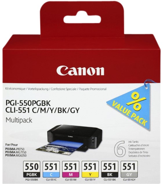 Stel een vraag over Inktcartridge Canon PGI-550 + CLI-551 zwart + 5 kleuren