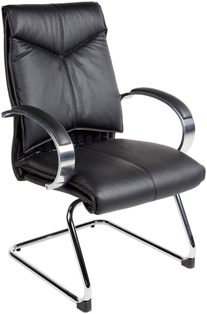 Specificaties Stoel Luxe President zwart leder met verchroomd sledeframe