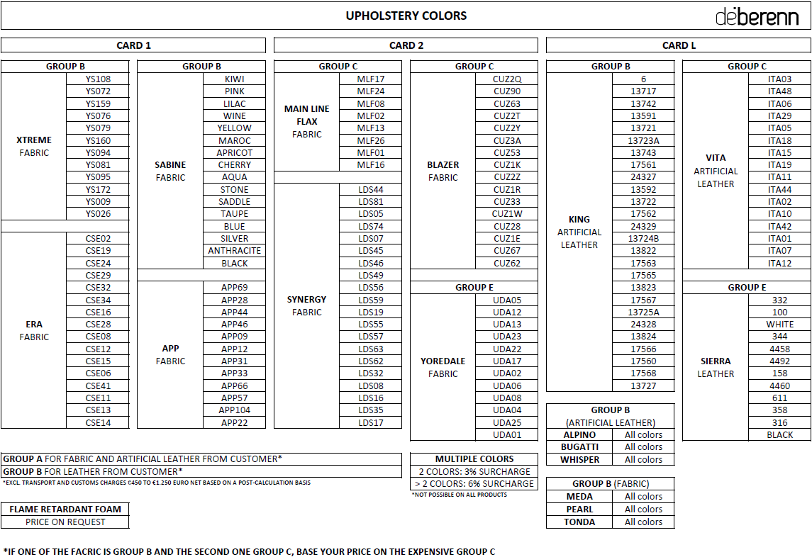 Diverse stofmogelijkheden prijs gebaseerd op stofgroep B, zie kleurenkaart
