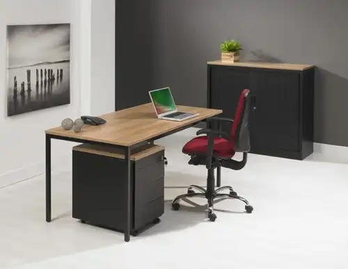 De ProLine basic goedkope kantoorbureaus zijn simpel maar erg goed te gebruiken als werkplek. De tafels hebben een sterk metalen frame en de bureaubladen zin leverbaar in moderne kleuren. Door de melamine toplaag zijn de bladen krasvast en gemakkelijk schoon te houden.