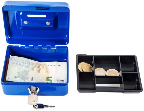 Geldkist Pavo met muntsorteerbak 300x240x90mm blauw