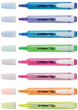 Schuine punt. Schrijfbreedte 1 - 4 mm. Doorschijnend lichaam in de kleur van de inkt. Geventileerde dop en parelmoerachtige witte clip.
