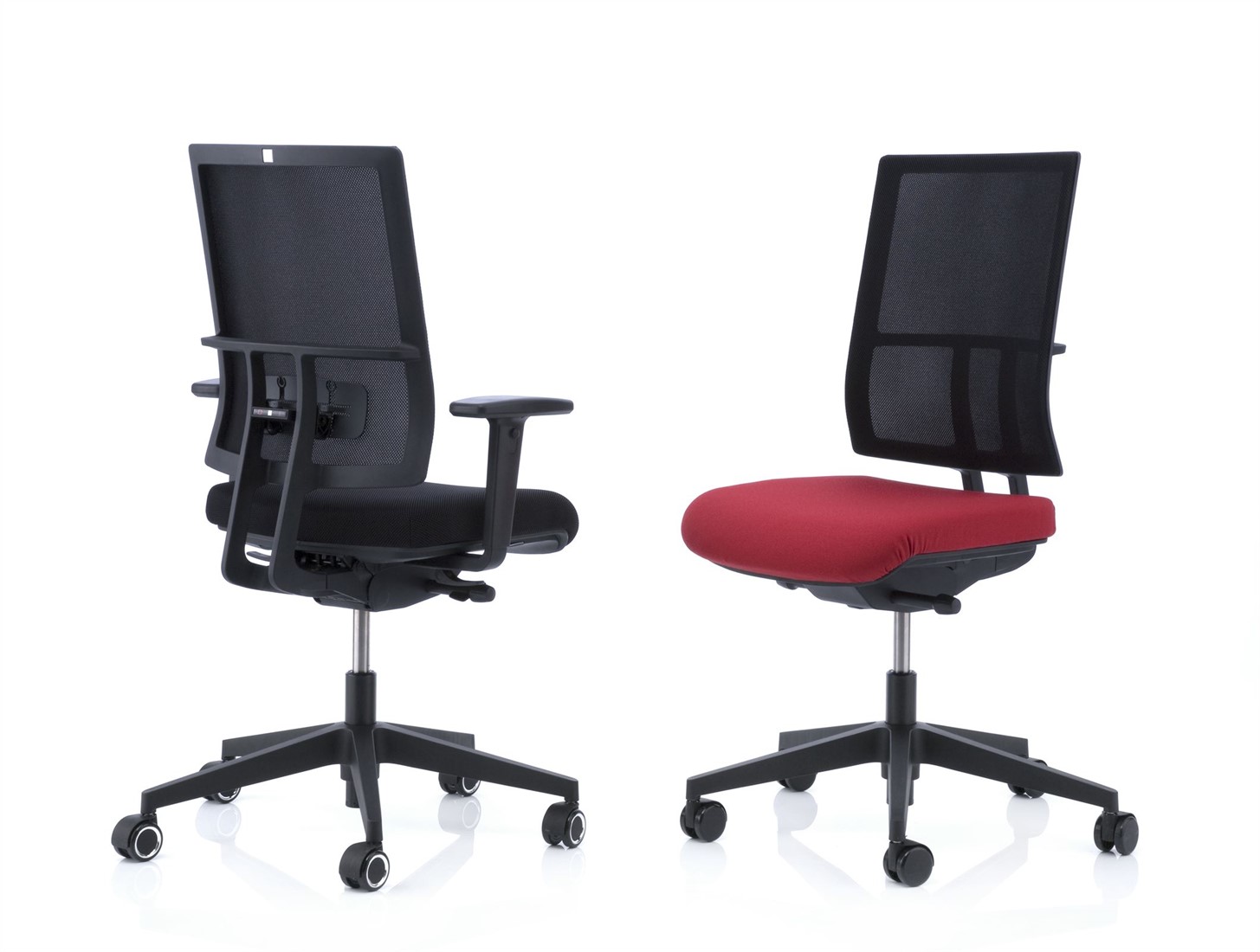 Bureaustoelen zijn leverbaar met zwart kunststoffen voet of met een aluminium voet.