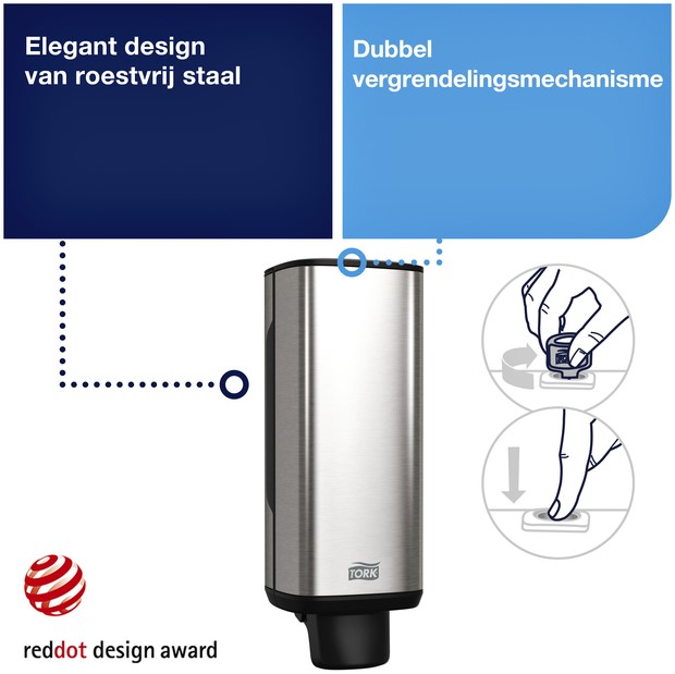 Stel een vraag over Zeepdispenser Tork S4 Image Line 1000ml zilver 460010