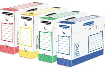 Bankers Box basic archiefdoos heavy duty 9,5 x 24,5 x 33 cm geassorteerde kleuren pak van 8 stuks