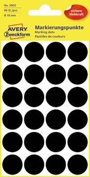 AVERY ronde etiketten 18mm zwart