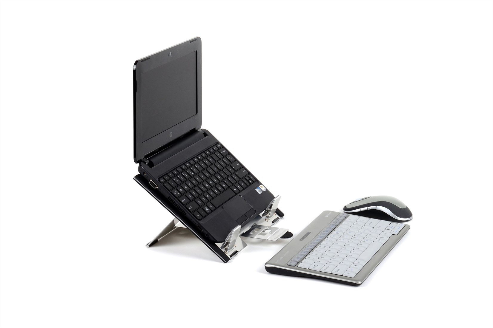 Laptop stand waar je je laptop van 12 inch op kan plaatsen. Door een ergonomische laptopstandaard voorkom je nek, rug en schouderklachten. De laptophouder is klein en ongecompliceerd daarom kan je het overhaal meebrengen.