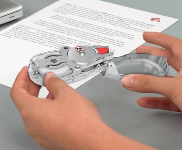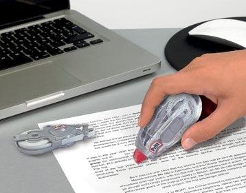 De Pritt correctieroller is ideaal te gebruiken voor zowel woordjes als voor zinnen. Voor als je zinnen wil aanpassen kan je het best trekken en voor alleen woordjes duwen.