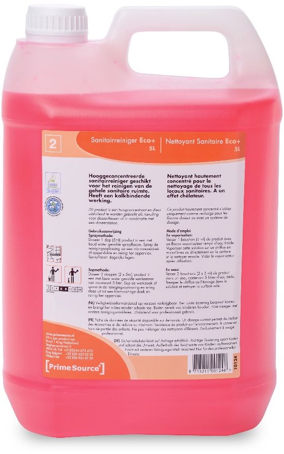 Stel een vraag over SANITAIRREINIGER CAN HOOGCONCENTRAAT PRIMESOURCE 5 LITER ECO+ 2 CANS