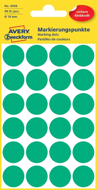 Stel een vraag over Etiket Avery Zweckform 3006 rond 18mm groen 96stuks