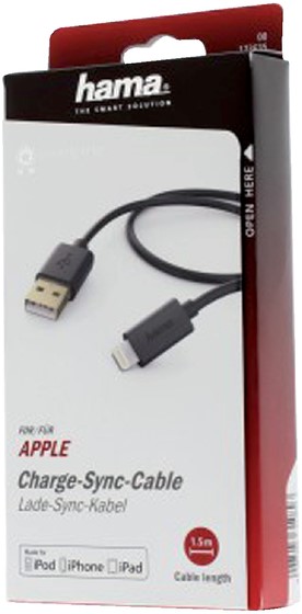 Specificaties Kabel Hama USB Lightning-A 1.50 meter zwart