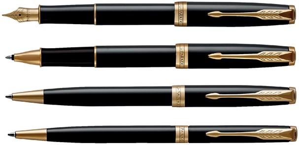 Balpen en vulpen Parker Sonnet black lacquer GT medium 2 stuks