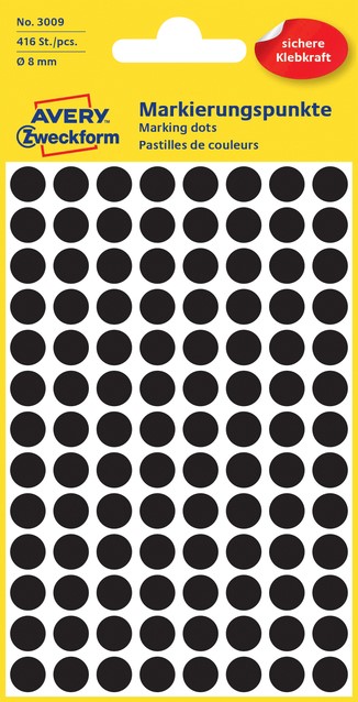 Stel een vraag over Etiket Avery Zweckform 3009 rond 8mm zwart 416 etiketten