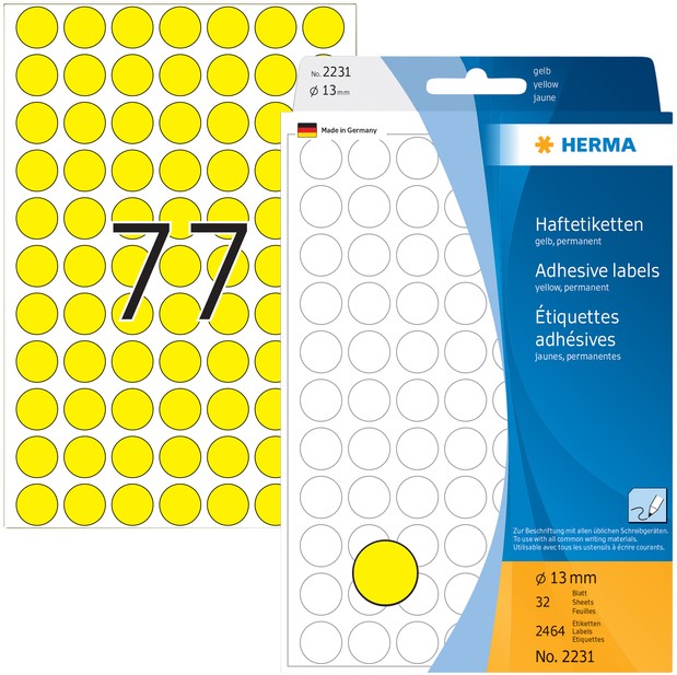 Stel een vraag over Etiket HERMA 2231 rond 13mm geel 2464stuks