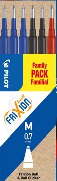 Pilot vulling voor Frixion Ball en Frixion Ball Clicker etui met 6 stuks in klassieke kleuren