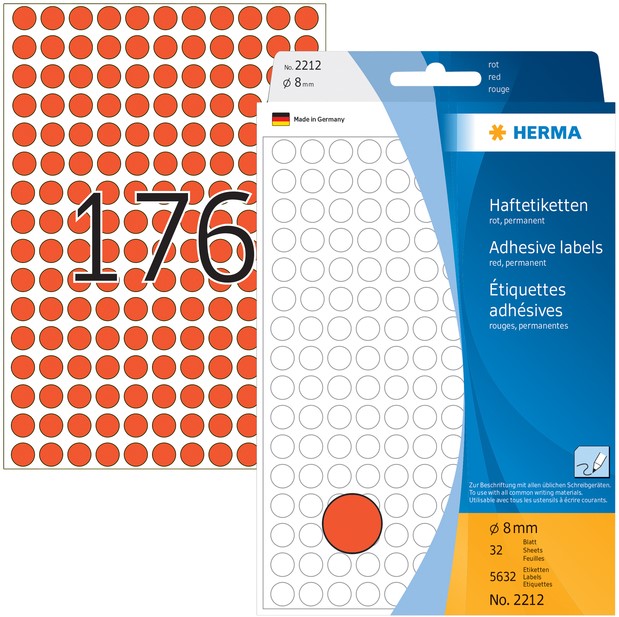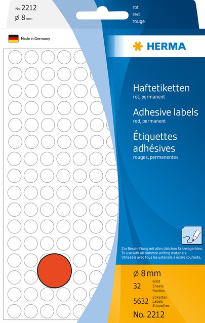 Stel een vraag over Etiket HERMA 2212 rond 8mm rood 5632stuks
