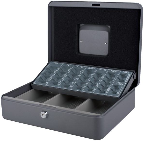 Accessoires Geldkist Pavo met muntsorteerbak 300x240x90mm grijs