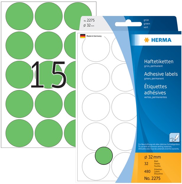 Stel een vraag over Etiket HERMA 2275 rond 32mm groen 480stuks