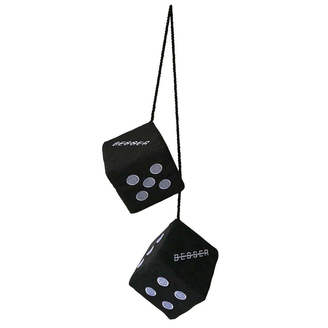 Dobbelstenen van Alcantara stof met gestikt Besser logo.