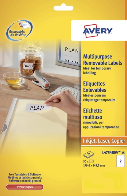 Stel een vraag over Etiket Avery L4734REV-25 199.3x143.5mm wit 50 etiketten