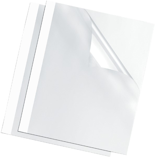 Thermische omslag met transparante PVC voorzijde en glanzend wit achterblad.