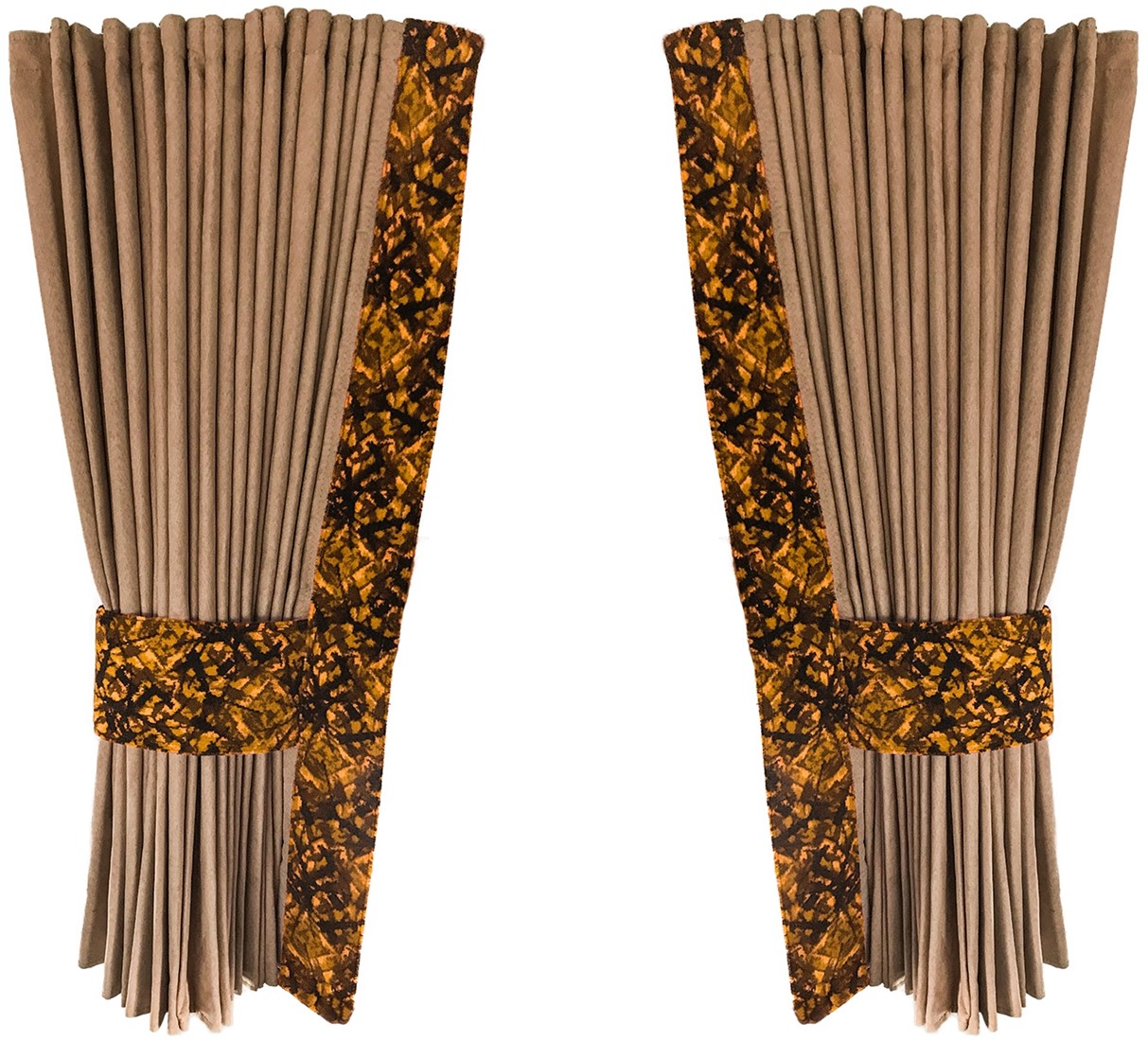 Deze zijgordijnen zijn 100% verduisterend en handgemaakt van dubbele alcantara stof met een pluche rand.