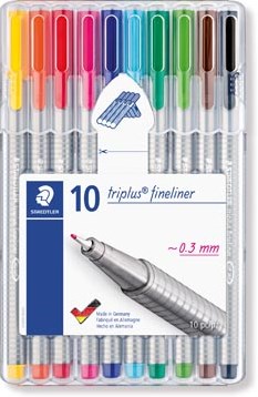 Staedtler fineliner Triplus geassorteerde kleuren, opstelbare box met 10 stuks