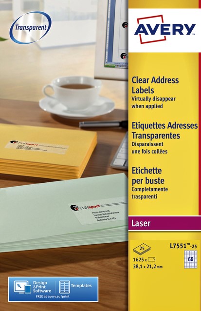 Stel een vraag over Etiket Avery L7551-25 38.1x21.1mm transparant 1625 etiketten