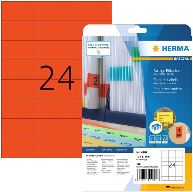 Stel een vraag over Etiket HERMA 4467 70x37mm verwijderbaar rood 480stuks