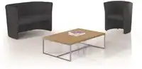 Een mooie tafel passend bij entree meubelen als fauteuils of zitbanken voor kantoor. In melamine met houtlook afwerking in meerdere kleuren. Ook kun je kiezen uit drie kleuren voor het frame.