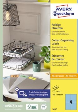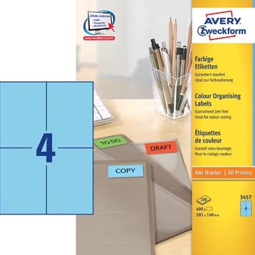 AVERY Gekleurde etiketten 105 x 148 mm 400 stuks blauw