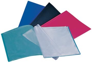 Voor A4 formaat. Met vaste tassen. Geassorteerde kleuren: roze, blauw en zwart.