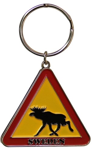 Sleutelhanger van Eland op een gevarenbord van Zweden.
