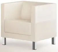 Een receptiebank in een strak design. Met de vierkante hoeken en de strakke verchroomde poten past deze bank perfect in een moderne ontvangstruimte, kantoor of receptie. Bekleed de 1 persoons bank in vele moderne en frisse kleuren en kies voor stof, kunstleder of echt leder. Wanneer de stoel is uitgevoerd in stof, is deze brandwerend.