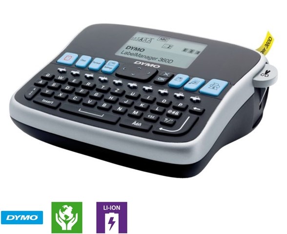 De Dymo LabelManager 360D is een praktische labelmaker die ideaal is voor gebruik op kantoor, in het magazijn of thuis. Met het grote QWERTY-toetsenbord maak je eenvoudig labels in verschillende kleuren en lettertypes. Het brede scherm maakt het mogelijk om labels van 6, 9, 12 en 19 mm breed snel te creëren. Deze labelmaker is perfect voor het labelen van kabels, producten, archieven en meer. Zelf labels maken was nog nooit zo eenvoudig!