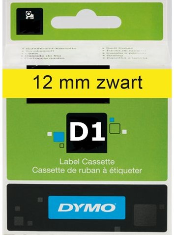 Stel een vraag over LABELTAPE DYMO 45018 12MMX7M D1 GEEL/ZWART 1 Stuk