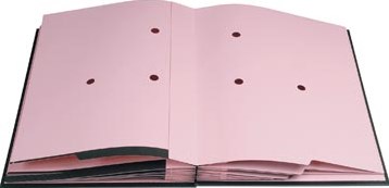 Binnenkant in roze hard karton 300g/m2 perforatie op 3 punten in de compartimenten om te zien of er documenten in zitten
