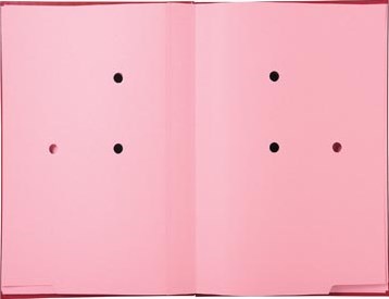 Binnenkant in roze hard karton 300g/m2 perforatie op 3 punten in de compartimenten om te zien of er documenten in zitten