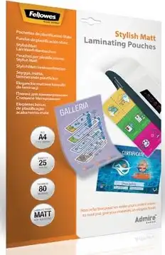 Specificaties lamineerhoezen A4 Fellowes Admire Stylish Matt A4 160 micron 2 x 80 micron pak van 25 stuks