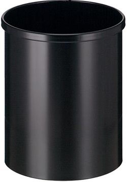 Ronde vuilbak uit metaal. Zeer geschikt voor op kantoor, of in een kleine ruimte. Hoogte: 30,5 cm, diameter: 25,5 cm. Inhoud: 15 l. Kleur: zwart.